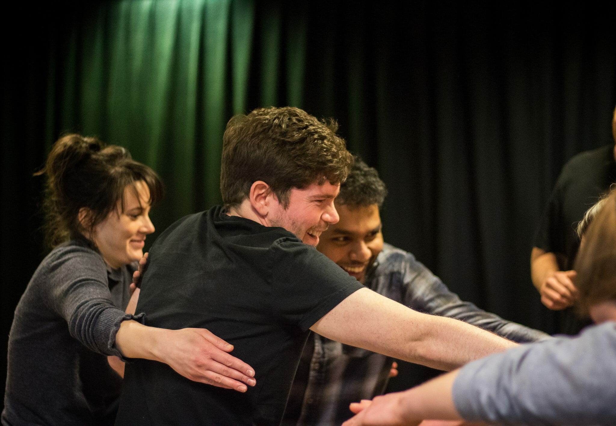 At any point, any of the offstage performers can yell “Freeze!” When this happens, the two performers onstage freeze on the spot holding their physicality in place. The person who yelled freeze then taps one of the performers on the shoulder and takes their place. The performer who was tapped on the shoulder goes offstage and then a new scene starts inspired by the performers’ physicalities.