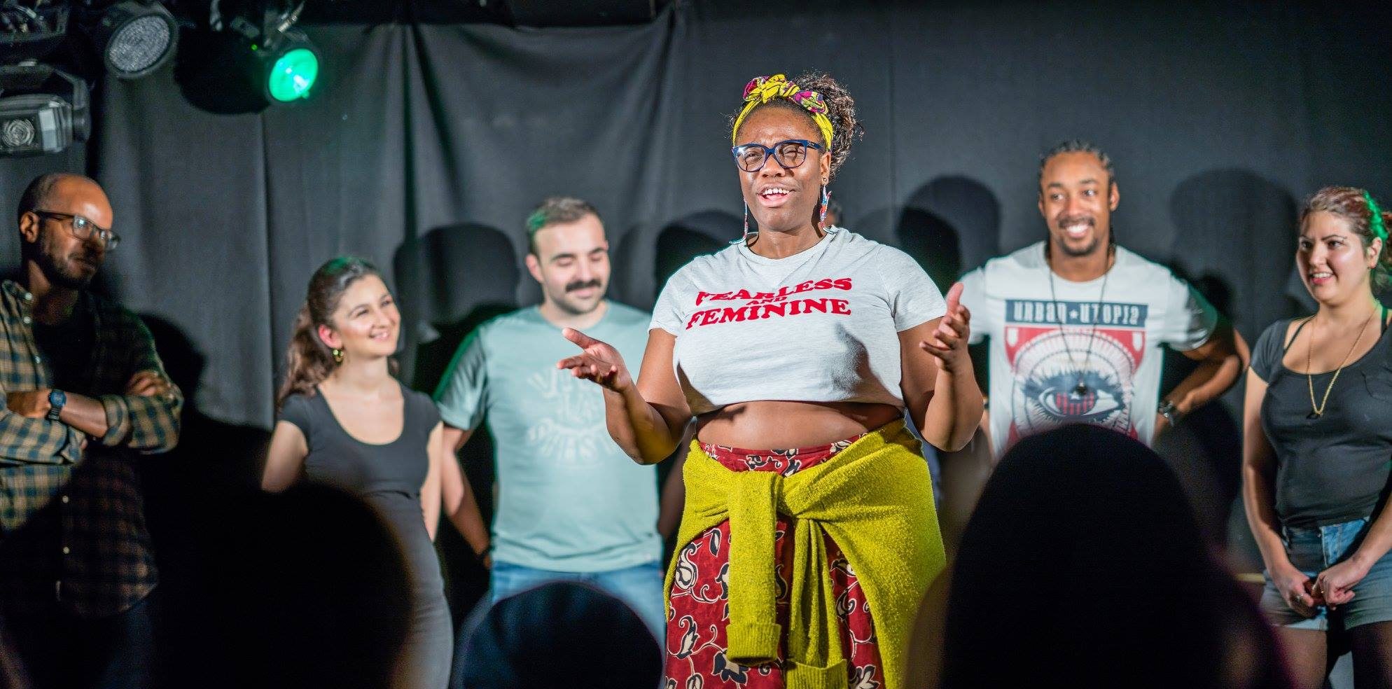 I started at Hoopla in August of 2017. I remember interviewing with Steve and he asked me what values I would bring to Hoopla. I told him one of my main aims was to bring more diversity to the improv and comedy scene. I had noticed that the shows, performers, and audience members I had been seeing around the comedy scene did not reflect the vast culture and diversity that we have in London. I grew up here, and wanted to see people on stage that reflect the London I know and love.  Funnily enough, at the same time Hoopla had already been talking to Tai Campbell about creating more space for black performers in the improv scene. It was perfect, because Tai and Steve had already gotten that ball rolling when I came on board and so I could help keep it rolling! I was over the moon to be part of something that would bring more diversity to the improv scene.