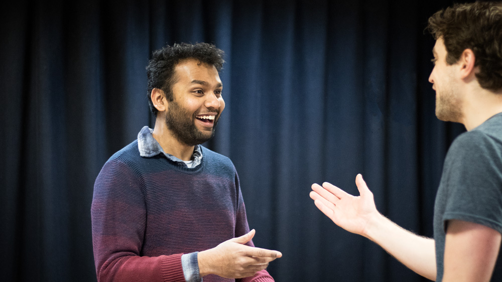 In pairs, one improviser mimes giving an object to the other. The second improviser thanks them and names the object “Thanks for this tiny horse”. It doesn’t need to be the same as what the original improviser thought it was. They swap so the other improviser gives a gift and the exercise is repeated. Now add a third beat; one mimes a gift, the other thanks and names it, then the giver adds information such as “I knew you’d like a tiny horse because you like horse riding but you’re scared of falling a long way to the ground”.