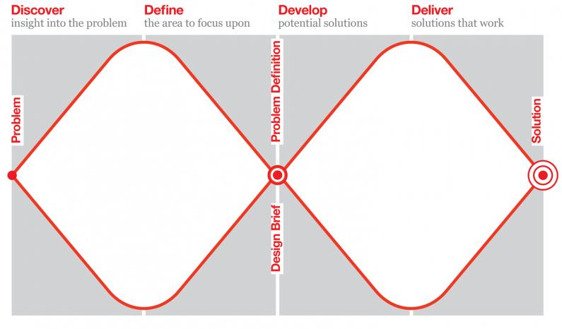 Below is the Design Council’s Double Diamond. This is a model which sums up the creative process across multiple disciplines and acts as a framework for innovation: