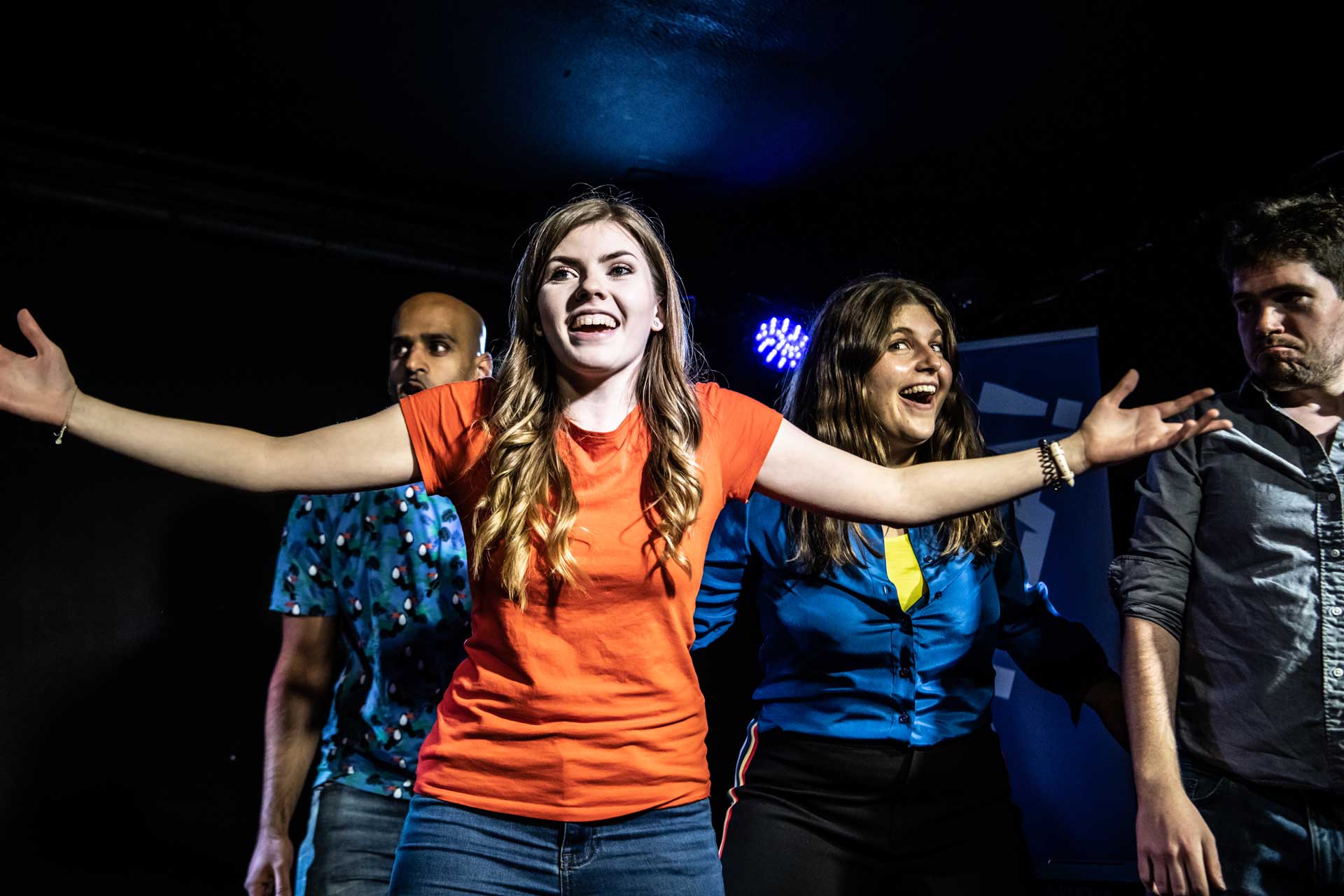 Hoopla are the UK’s first improv theatre and the UK’s biggest improv school with fun and friendly improv shows and classes every day of the week in London and across the UK. We provide fantastic ongoing performing opportunities to students from our courses and a warm, welcoming and supportive community to help make improv for everyone.